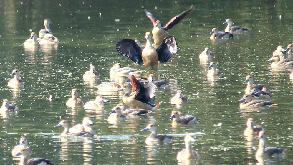 গাছপালার চূড়ায় বাসা বেঁধেছে ঝাঁকে ঝাঁকে শামুকখোল পাখি